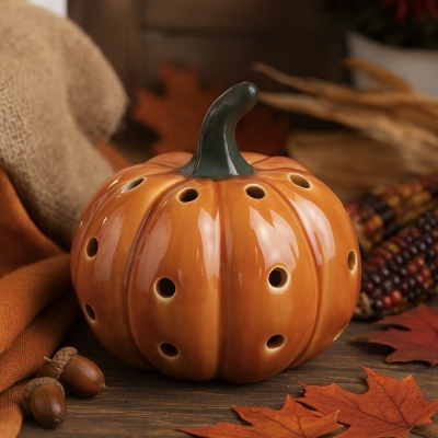 Gisela Graham White Mini Pumpkin with Gold Leaf