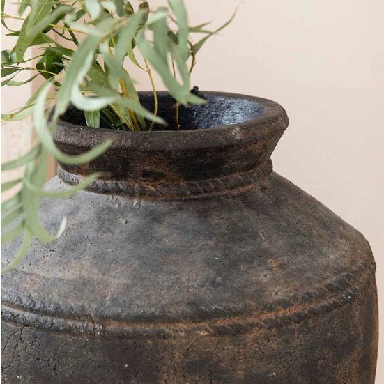 With its rustic charm, the Portesham Vase makes for a striking display of flowers on a tabletop, bookshelf, or windowsill. The vase's Antique Brown colour serves as the perfect contrast to the vibrant hues of your floral arrangements, while the stitching pattern along its neck and shoulder adds a touch of decorative flair.