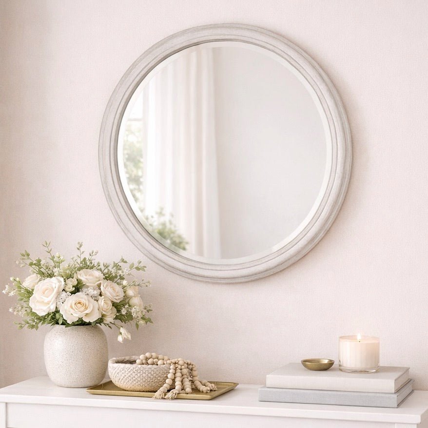 Barley Twist Round Wall Mirror - 70cm - Off White